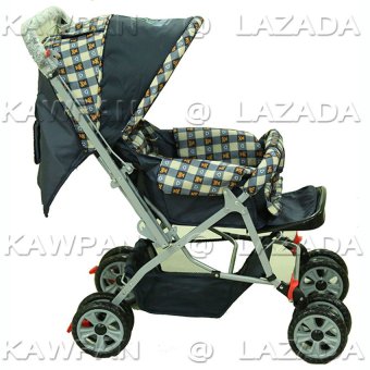 Attoon รถเข็นเด็กลายสก๊อต ปรับ 3 ระดับ (นั่ง/เอน/นอน) (สีดำ) ::